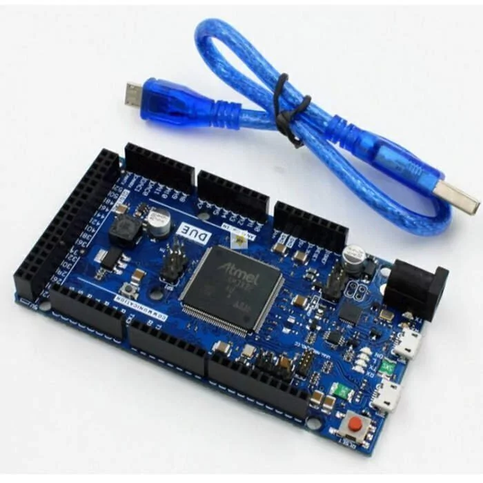 O Arduino Due é uma placa para desenvolvimento baseada no microcontrolador Atmel SAM3X8E ARM Cortex-M3 que é o primeiro microcontrolador com núcleo ARM de 32 bits utilizado em um placa Arduino.